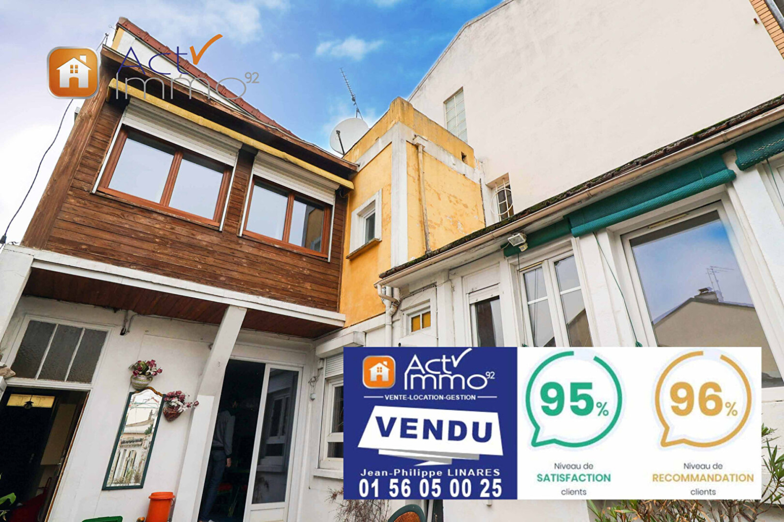 Colombes (92700)Sur un terrain clos d'environ 340 m², une maison de 6 pièces offrant au rez-de-chaussée, une entrée, un double séjour, une cuisine aménagée et un WC. Au 1er étage, un palier, 3 chambres, une salle d'eau, un WC, un dressing, une salle d'eau et une chaufferie. Une cave.